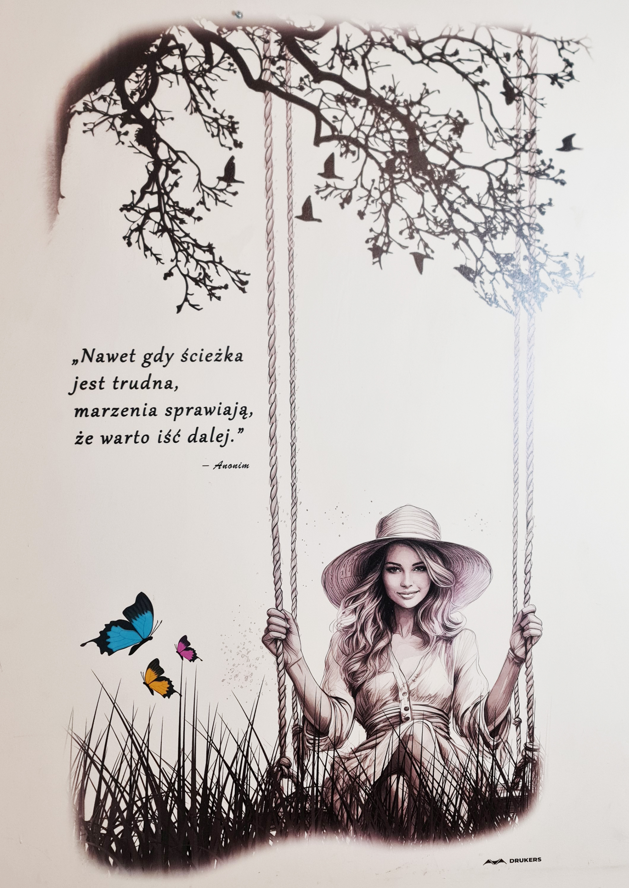 Grafika może być wydrukowana zarówno w pomieszczeniach, jak i na zewnątrz np. betonowe słupki, mury lub bramy garażowe.